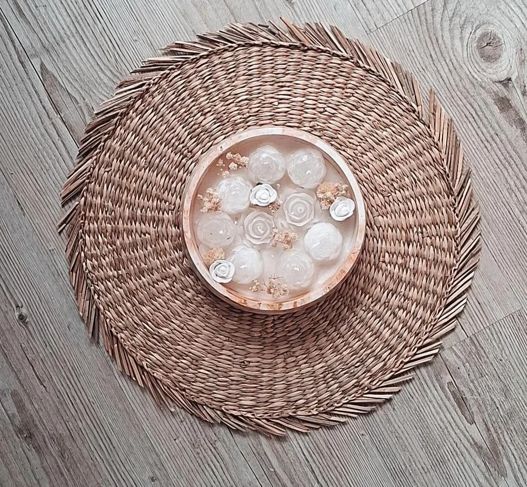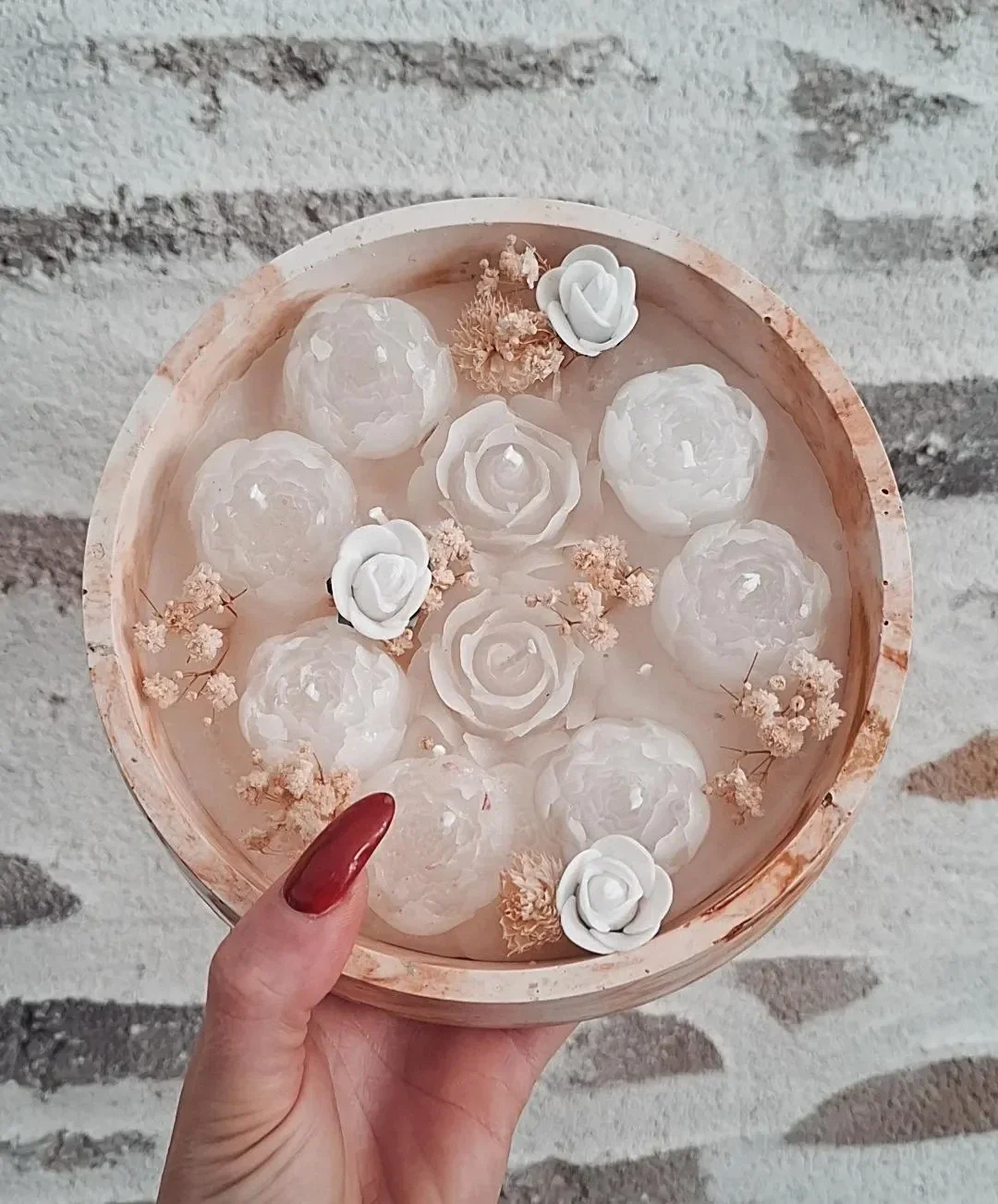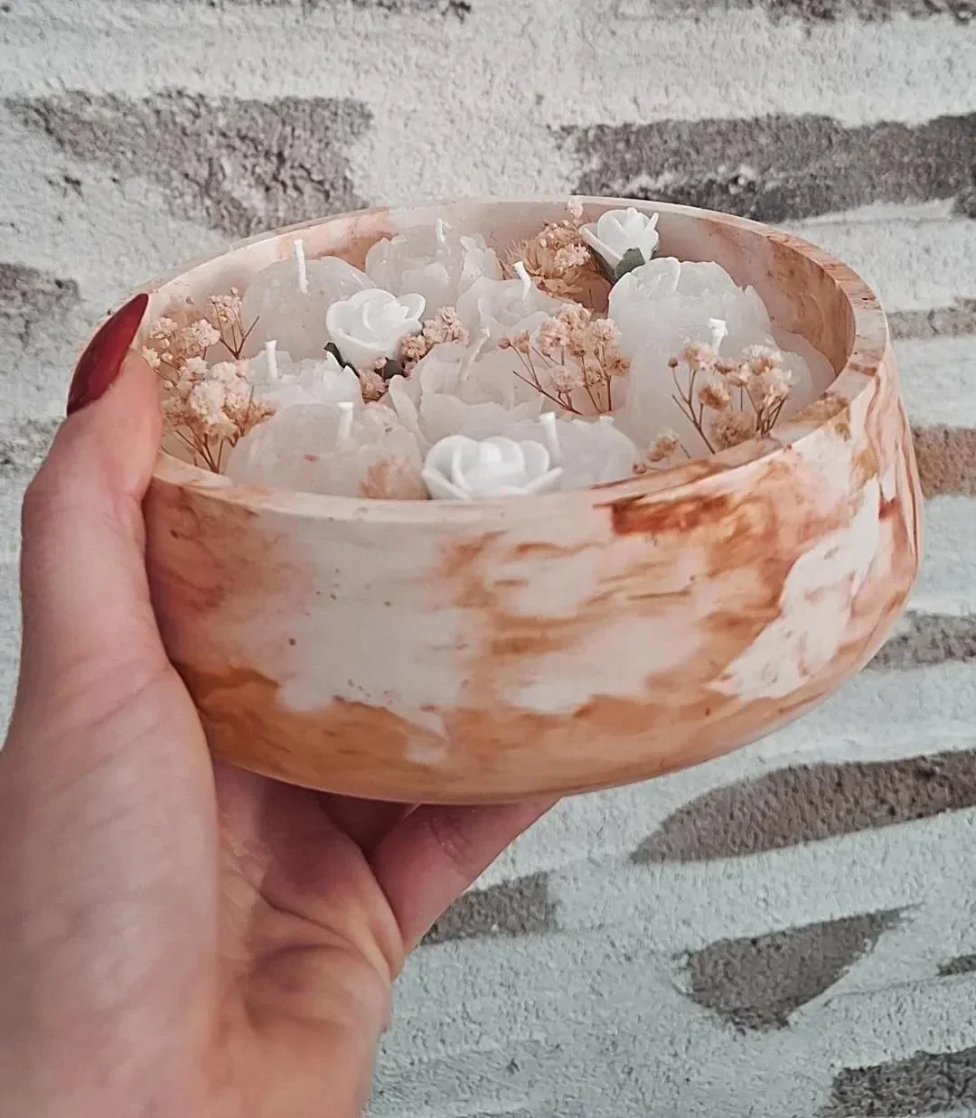 Un grand bol avec une bougie fleurie pour parfumée votre maison avec un odeur de linge propre